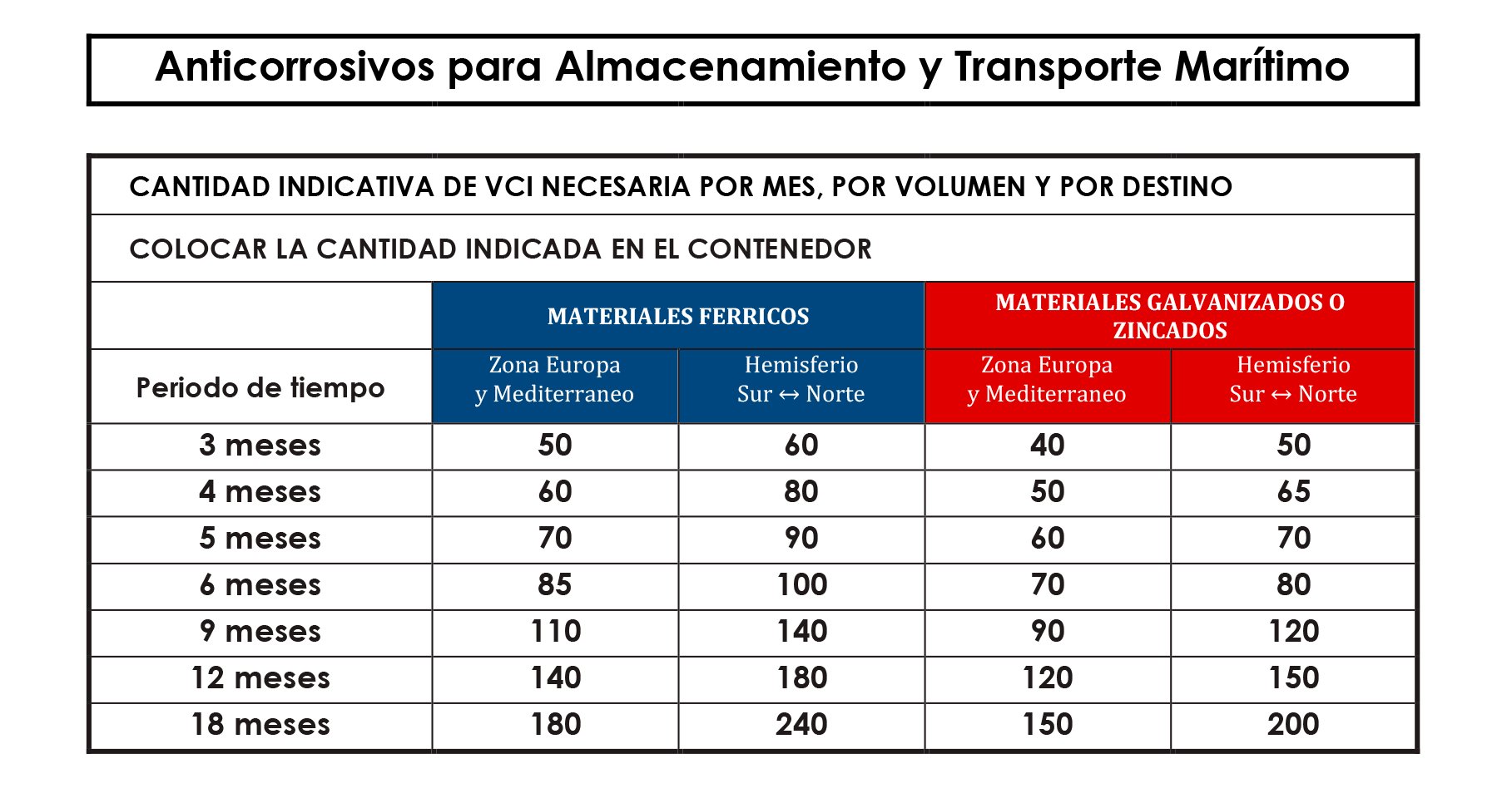 Producto de nueva tecnología diseñado como anticorrosivo y presentado en formato TABLETA que actúa en fase vapor con gran facilidad, comodidad y de forma eficaz, que aporta protección anticorrosiva en los envíos marítimos o almacenaje en exterior de materiales metálicos.